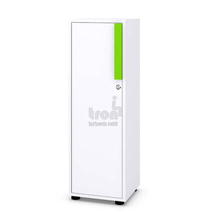 Szafka szkolna z drzwiami 1200x400x400, wewnątrz 2 półki, wykonana z płyty laminowanej 18 mm. Krawędzie oklejone obrzeżem ABS 2 mm. Zamykana na zamek. Uchwyty lakierowane.
